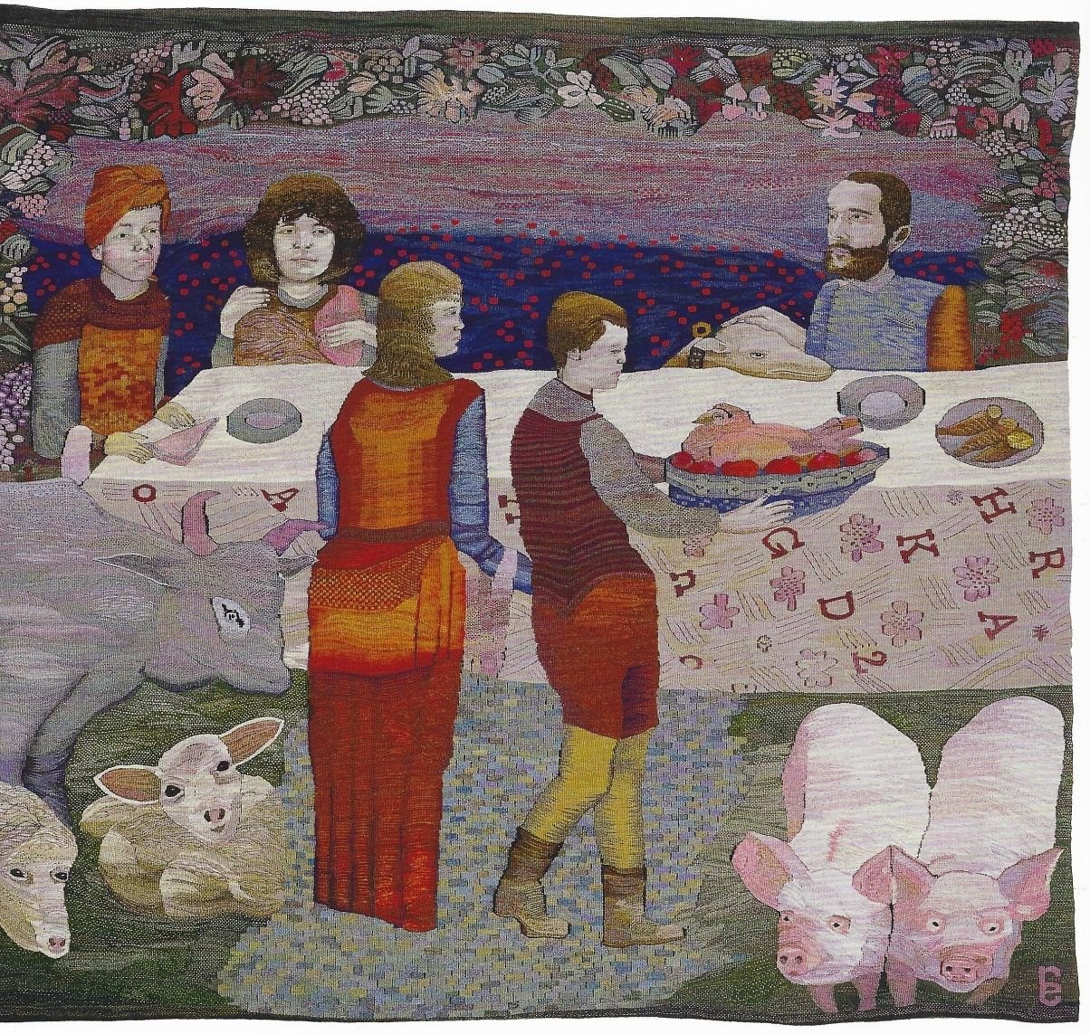 Elle commence tout d'abord par la broderie en laine, sans esquisse, et crée des motifs tourbillonnants (Motifs I, 1973 ; Motifs II, 1974). Elle se consacre ensuite à la tapisserie haute-lisse traditionnelle, mais s'affranchit du carton placé derrière la chaîne pour laisser libre cours à son imagination créative. Elle entame alors une série de tapisseries-portraits qui, dans les années 1970, obsédées par le modernisme, ont suscité l'incompréhension des avant-gardes expansionnistes. Elle se tourne alors résolument vers la famille et crée ses œuvres les plus notables, dont Don Carlo (1985), Farkas et ses amis (1990) et Béata (1988).
